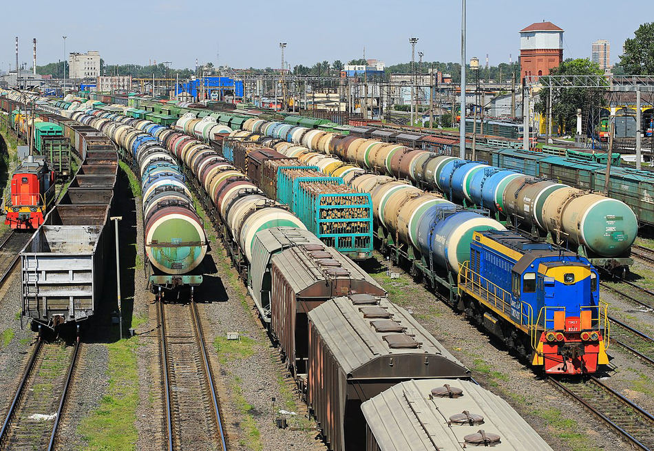 | Credit: Wikimedia photo by Kora27 licensed under Creative Commons To view the original image and license: https://commons.wikimedia.org/wiki/File:G%C3%BCterzugverkehr_im_Frachtterminal,_St._Petersburg,_Russland.._2H1A5597WI.jpg The older Java version of this picture puzzle is available if needed. |