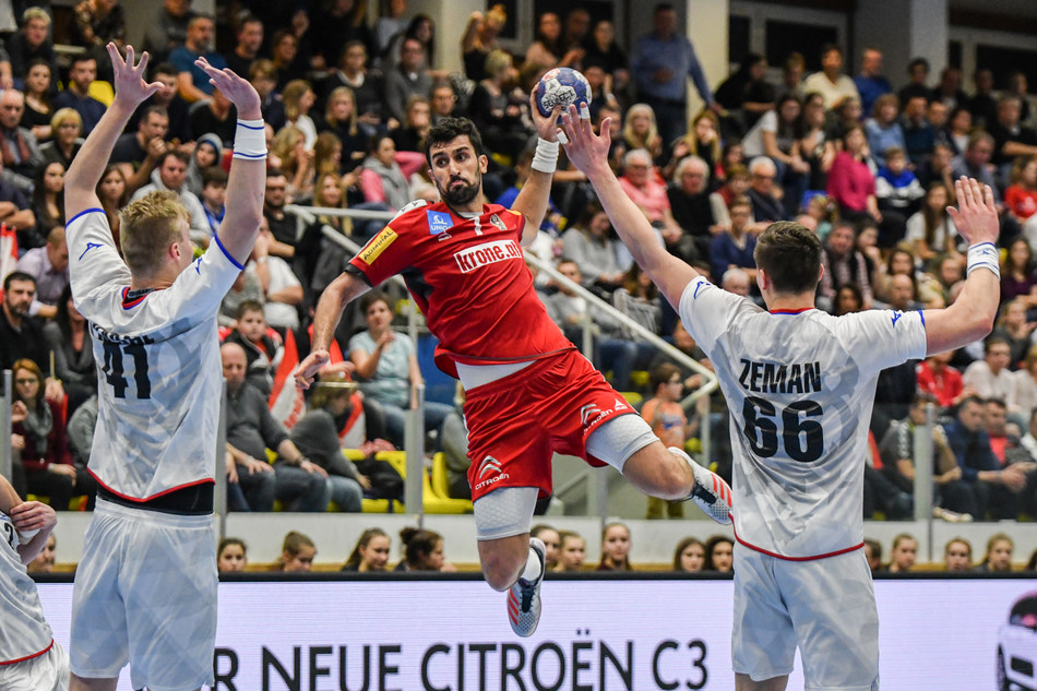 | Credit: Wikimedia photo by Granada licensed under Creative Commons To view the original image and license: https://commons.wikimedia.org/wiki/File:20180105_Men%27s_handball_Austria_-_Czechia_Janko_Bozovic_850_9203.jpg The older Java version of this picture puzzle is available if needed. |