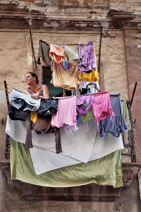 | Credit: Wikimedia photo by Jorge Royan licensed under Creative Commons To view the original image and license: https://commons.wikimedia.org/wiki/File:Lady_hanging_laundry,_Havana,_Cuba_2011.jpg The older Java version of this picture puzzle is available if needed. |